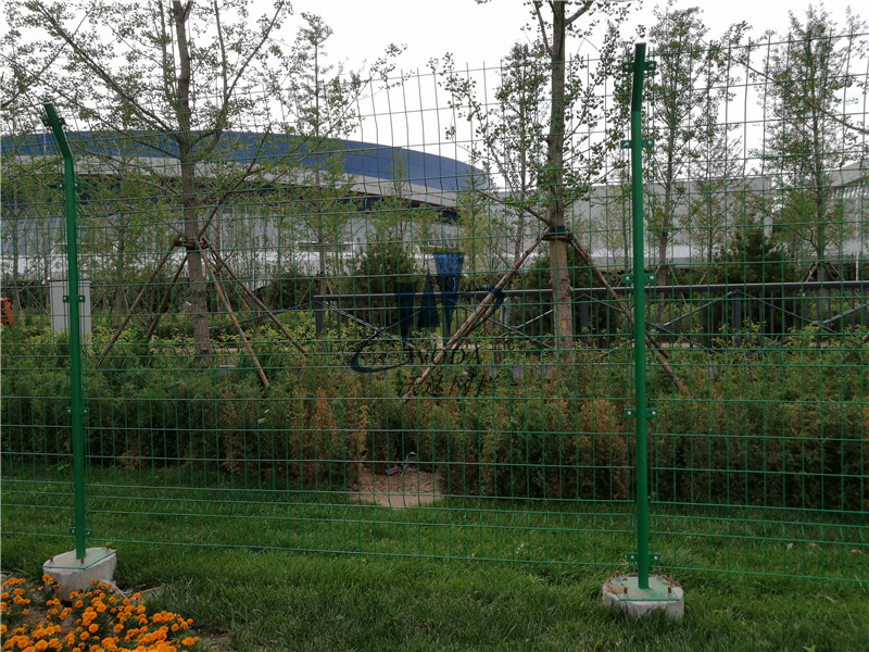 圍欄鐵絲網原料:常規采用直徑4mm優質低碳鋼絲點焊而成,絲徑尺寸范圍為3.5-6.0mm