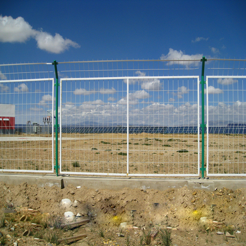 太陽光發(fā)電站圍欄采用采用低碳鋼絲作為原材料,表面浸塑具有日久抗腐蝕、抗紫外線不怕雨淋的特點。這種工藝有無需模具、加工成本低、成型容易、可加工各種外形等特點被廣范使用。是專門為光伏電站設計的防護設備,主要是用在光伏電站各個區(qū)域的防護和隔離.它有效防止了變電站內(nèi)外的人身安全和變電器等設備的防盜,是光伏電站重要的防護產(chǎn)品。