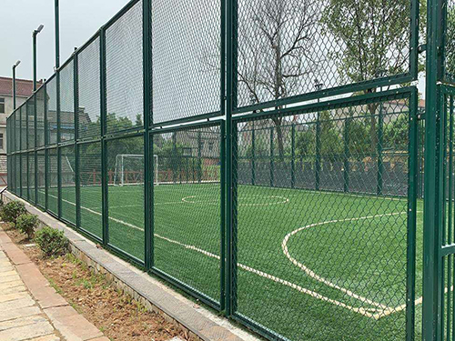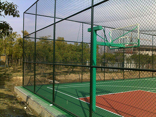 材質:pvc/pe包塑勾花網,內絲采用優(yōu)質低碳鋼絲鍍鋅處理,外表進行涂塑防腐處理。 生產工藝:編織焊接 表面處理:圍網采用PE/PVC包塑絲,立柱、邊框采用噴塑、浸塑處理 常用規(guī)格: 1.包塑絲經:3.8mm; 2.網孔:50mm×50mm;60mm×60mm; 3.尺寸:3000mm(寬度)*4000mm(高度)3000mm(寬度)*6000mm(高度) 4.立柱:直徑60mm圓管,壁厚2.5mm; 5.橫柱:直徑50mm圓管,壁厚2mm; 顏色:一般多采用墨綠色和草綠色,以墨綠色居多。 優(yōu)點:美觀耐用、免維護、安裝簡單、有較好的防護、裝飾、美化效果。
